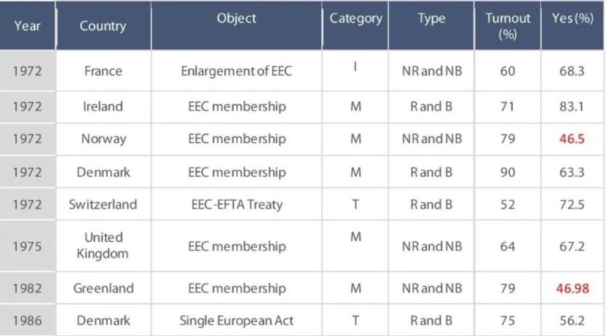 Референдуми по въпроси, свързани с ЕС (1972-2016):