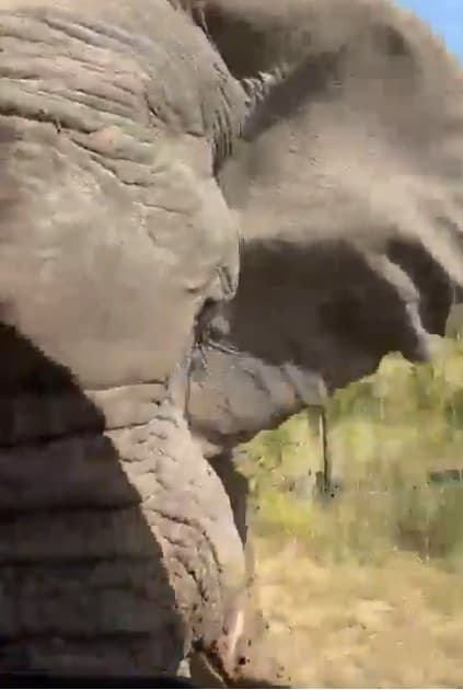 По думите му колата е спряла, защото е попаднала в капана на „терена и растителността“ и не е могла да маневрира, за да се измъкне от слона.