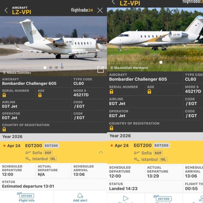 С частния самолет на боса на ЦСКА г-н Валтер Папазки, с който санкционираният за корупция от САЩ и Великобритания за гранд корупция Пеевски явно е близки отношения, защото ползва като свой Bombardier Challenger 605 на свързаната с него авиопревозваческа фирма за частни самолети EGT Jet. Поведението на Шишкото и ползването на тези самолети е част от разследването ни за грубото погазване на санкциите по Магнитски, наложени му от OFAC и Великобритания.