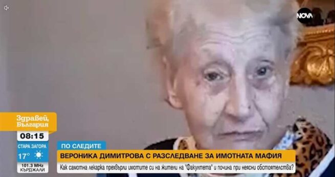 9 дни след като жилищата са прехвърлени, Нанка Калчева умира. Причината за смъртта не е ясна. Доктор от траурна агенция, когото гледачите викат, пише, че е имала счупени ребра. „Причината за смъртта не стана ясна, тъй като ексхумацията беше направена в много късен етап – година и половина след като тя е починала. Съответно от останките ѝ не са могли да вземат никакъв материал, за да се стигне до едно категорично заключение”, казва адвокатът. По същата причина не може да се установи и на кого е пръстовият отпечатък на пълномощните, с които са прехвърлени апартаментите. Новата собственичка на две от жилищата на вече починалата пенсионерка се казва Гинка Иванова. В едното живее тя, другото го е препродала, предава Нова.