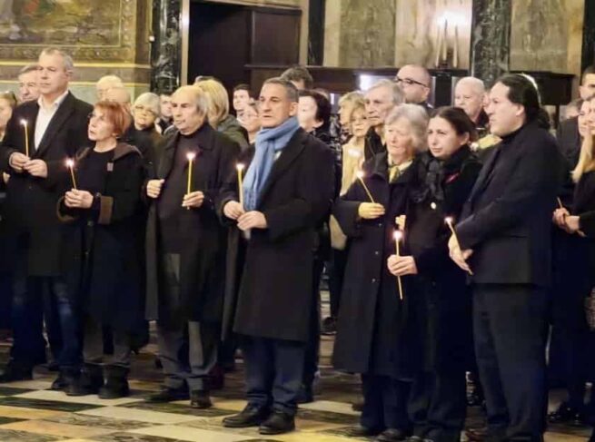 Панихидата в „Св. Александър Невски“ отслужи Мелнишкият епископ Герасим в съслужение с духовници от БПЦ. На службата присъстваха дъщеря му Станка Желева, съпругът й колумбиецът Адриан Вела Усме, близки и приятели на д-р Жельо Желев, както и общественици, политици, представители на институции и граждани, дошли да почетат паметта му.