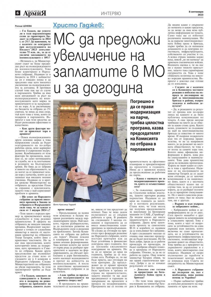 Това ми се случва за първи път. Очаквам да получа отговор защо се е случило (не е заради големината на интервюто). Надявам се медийната политика на МО да не е в стила на партиен стенвестник“, бесен е Гаджев.
