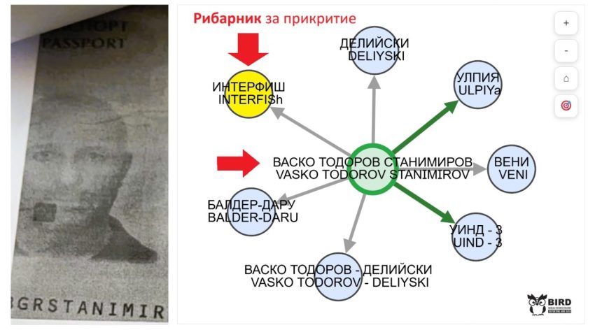 Васко Станимиров и свързаните с него фирмиПри реализацията на ГДБОП в наркофабриката в мината край Кюстендил са задържани Юри Фимев, Антони Будинов и Денис Василев, а Васко Станимиров продължава да се издирва. В Юри Фимев са открити около 600,000 евро и повече от 600 патрона, за които по първоначална информация, се счита, че той притежава незаконно. Във времето, според източници на BIRD, “Интерфиш” трайно има сметки от по 200,000 лв. за електричество на месец. Това продължава години наред и е един от индикаторите, че се гледа марихуана на лампи. Обичайно това е най-качествената разновидност на канабиса, която достига до 30 евро за грам на улична цена – така наречената холандска семка.